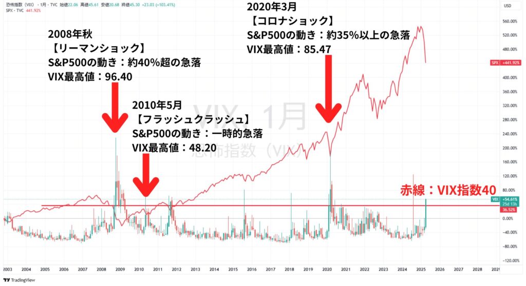 - VIXが40を超える場面は、いずれも「恐怖のピーク」。
